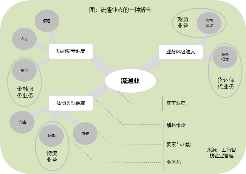 面(miàn)對(duì)商業世界的競争加劇和生态化,企業需要(也可以)從整體經(jīng)營層次升維到要素經(jīng)營和功能(néng)經(jīng)營層次,這(zhè)是沿著(zhe)趨近商業與企業本質方向(xiàng)的進(jìn)化和回歸。可升維到要素與一級功能(néng)層次,也可升維到要素與二級功能(néng)層次,等等。全要素和全功能(néng)業務化,尤其适用于有創新能(néng)力的企業,以及有龐大客戶資源和業務基礎的企業;并可再反過(guò)來,驅動自身發(fā)展成(chéng)爲更具創新能(néng)力的企業,以及更具龐大客戶資源和業務基礎的企業。每一種(zhǒng)業态都(dōu)不是由單一要素和功能(néng)構成(chéng)的,都(dōu)可以升維到要素和功能(néng)層次,下圖是以流通業爲例,對(duì)業态的一種(zhǒng)解構。