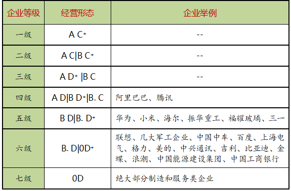 以企業評級矩陣爲工具,靜态地觀察中國(guó)企業目前實際的經(jīng)營形态,可以看到,中國(guó)企業經(jīng)營的層次普遍較低,其中:絕大部分是7級企業,即處在評價矩陣的深紅色區域;其次是屈指可數的6級和5級企業,即處在相對(duì)淺一點的紅色區域;夠得上4級标準的企業很少,見下表。當然,分類結果,毫無疑問,一定是金字塔形的,塔尖層級的企業數量少,塔基層級的企業數量多。低端容易過(guò)剩,高端總顯不足,這(zhè)是産業發(fā)展的規律所緻,隻是中國(guó)企業的這(zhè)種(zhǒng)結構更爲極端。