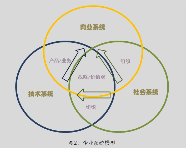企業,是一個包含社會(huì)系統和技術系統的商業系統 (見下圖2),其中,人與組織環境共同構成(chéng)企業的社會(huì)系統。對(duì)企業的管理可區分爲:對(duì)商業系統的管理、對(duì)技術系統的管理和對(duì)社會(huì)系統的管理。三者的關系是:(1)商業系統是目的,技術系統和社會(huì)系統是支撐;(2)如果說(shuō),一切都(dōu)來自于人的創造,則企業系統中的作爲社會(huì)系統的成(chéng)分,既是企業系統的構成(chéng),又是企業的“母系統”(社會(huì)制度對(duì)于國(guó)家發(fā)展具有與此相同的意義),其對(duì)企業而言的戰略意義超過(guò)另外兩(liǎng)個系統。企業的社會(huì)系統戰略,也即它的基礎戰略 。